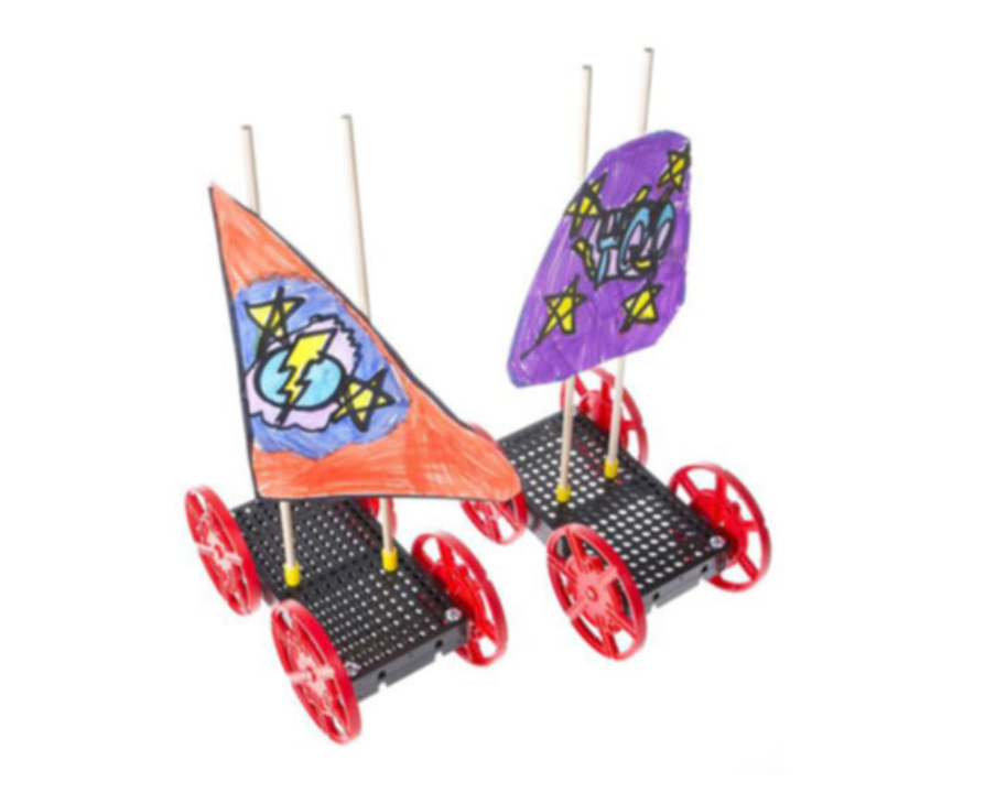 Engineer a Sail Car that can go the furthest distance, travel the fastest, or carry the most weight. Start by building the car base. Learn about forces and motion by completing the optional Sail Car labs. Then, design and build your own Sail Car to compete in a challenge.